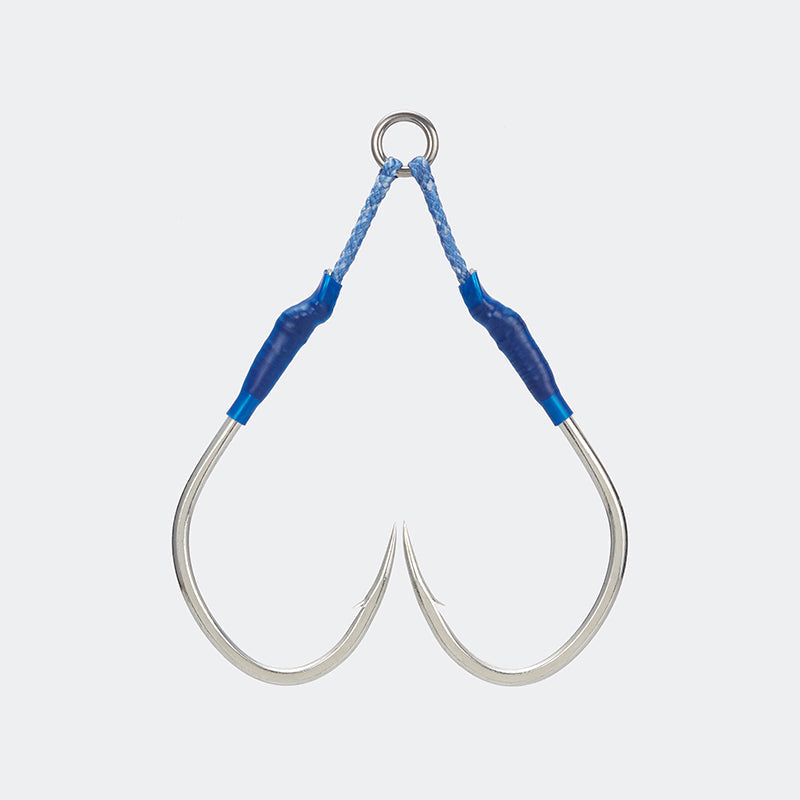 Short type double assist from JIGEN HYPER, the best fit with small silhouette jigs such as tungsten.